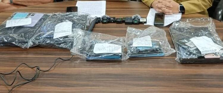 06 आरोपियों के कब्जे से 05 नग लैपटाप, 21 नग एण्ड्रॉयड मोबाईल फोन, ग्लांजा कार, सोने के जेवरात, एटीएम कार्ड, हिसाब-किताब के अन्य दस्तावेज जुमला कीमती 25 लाख रूपये की मशरूका बरामद।
