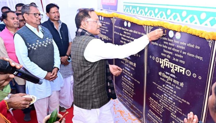 मुख्यमंत्री श्री साय ने इस अवसर पर 1 करोड़ 75 लाख रुपये की लागत से होने वाले 6 विकास कार्यों का भूमिपूजन किया। जिसमें 95 लाख रुपये की लागत से दोकड़ा में अखिल भारतीय वनवासी कल्याण आश्रम के चिकित्सालय भवन, 10-10 लाख रुपए के दो आरसीसी पुलिया, 20-20 लाख रुपए दो सामुदायिक भवन एवं 20 लाख रुपए की लागत के स्वागत द्वार निर्माण कार्य शामिल हैं।