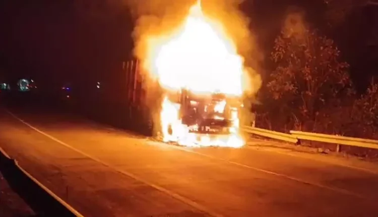 कोरबा में भीषण सड़क हादसा: ट्रक और बाइक की टक्कर में 2 लोग घायल, ट्रक में लगी आग