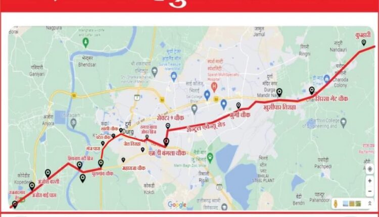 चार्टः- कुम्हारी टोल प्लाजा- सिरसा गेट चौक-डबरापारा तिराहा-खुर्सीपार तिराहा-पावर हाउस अण्डर ब्रिज-मुर्गा चौक-सेन्ट्रल एवेन्यु होते हुए सेक्टर-09 चौक-ठगडा बांध ओवर ब्रिज-जेल तिराहा-गांधी तिराहा-पटेल चौक-पुलगांव चौक-शिवनाथ नदी ब्रिज-अंजोरा बाईपास-राजनांदगांव से होकर डोगरगढ़ जायेगें।
