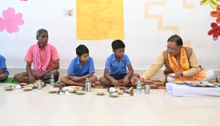 जन्मदिन पर मुख्यमंत्री श्री साय का न्योता भोज, अपनी थाली की मिठाई बाजू में बैठे बच्चों को दे दी