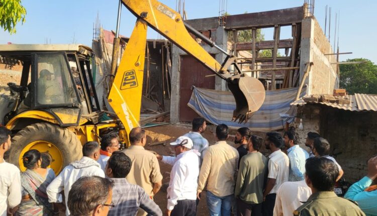 दक्षिण गंगोत्री के अवैघ निर्माण को 24 घंटे के अंदर जे.सी.बी. से ध्वस्त किया गया।
