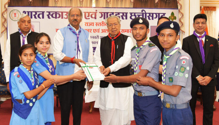 भारत स्काउट्स और गाइड्स छत्तीसगढ़ द्वारा आज राज्यस्तरीय अलंकरण समारोह आयोजित किया गया। राजभवन में संपन्न हुए इस समारोह में राज्यपाल श्री विश्वभूषण हरिचंदन ने राज्य के सर्वश्रेष्ठ स्काउटर, गाइडर, रोवर, रेंजर, एवं स्काउट-गाइड को राज्यपाल पुरस्कार से सम्मानित किया। सभी को प्रमाण पत्र के साथ 10-10 हजार रूपए की राशि राज्यपाल की ओर से प्रदान की गई।