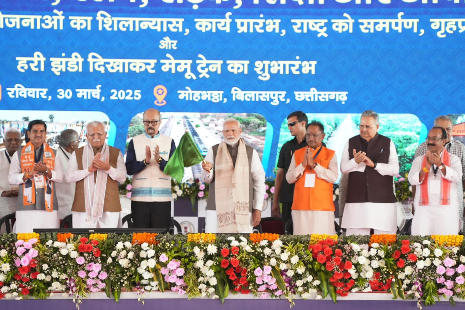 मुख्यमंत्री श्री साय ने कहा कि प्रधानमंत्री मोदी जी द्वारा लोकार्पित एवं शिलान्यास की गई परियोजनाएं रेल, सड़क, ऊर्जा, ईंधन, आवास और शिक्षा से जुड़ी हैं, जो न केवल लोगों के जीवन में खुशहाली और सुविधा का नया सूर्याेदय लाएंगी, बल्कि विकसित छत्तीसगढ़ की नींव भी मजबूत करेंगी। उन्होंने कहा कि प्रधानमंत्री श्री मोदी की गारंटी पर लोगों ने भरोसा किया जिससे विधानसभा और लोकसभा चुनावों में डबल इंजन की सरकार बनी और अब स्थानीय निकाय चुनावों में तीसरा इंजन भी जुड़ गया है।