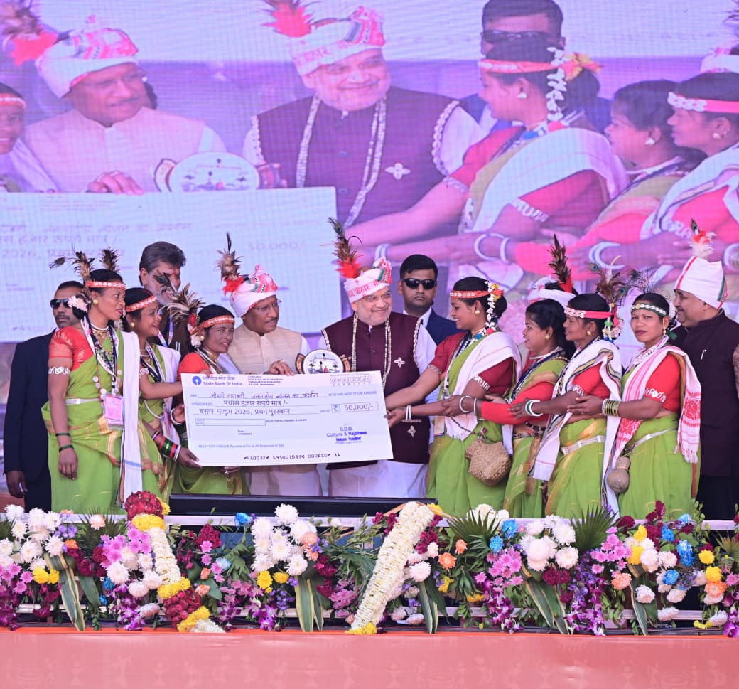 जगदलपुर, 09 फरवरी 2026/ केंद्रीय गृहमंत्री श्री अमित शाह ने कहा कि बस्तर भारत की संस्कृति का आभूषण है। बस्तर पण्डुम के माध्यम से यहां की संस्कृति और गौरवशाली परंपरा को छत्तीसगढ़ सरकार ने नए प्राण देने का काम किया। बस्तर पंडुम 2026 के सभी विजेताओं को केंद्रीय गृहमंत्री श्री शाह और मुख्यमंत्री श्री साय ने सम्मानित किया। केंद्रीय गृहमंत्री ने बताया कि इसमें प्रथम, द्वितीय और तृतीय स्थान प्राप्त करने वाले लोक कलाकारों को राजधानी दिल्ली में राष्ट्रपति भवन में आमंत्रित किया जाएगा, जहां उन्हें अपनी कला का प्रदर्शन करने और सहभोज करने का अवसर भी मिलेगा।