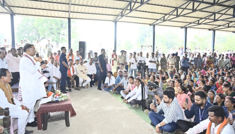 कांकेर 28 मई 2025/ सुशासन तिहार के अंतिम चरण के अंतर्गत आज मुख्यमंत्री श्री विष्णु देव साय का हेलीकॉप्टर कांकेर (उत्तर बस्तर) जिले के ग्राम मांदरी में उतरा। उन्होंनें पंचायत शेड के नीचे अपनी चौपाल लगाई और योजनाओं की जानकारी लेते हुए आम ग्रामीणों से संवाद किया। उन्होंने कहा कि यह मेरा सौभाग्य है कि आप लोगों से मिलने का अवसर मिला। आज आप सभी से मिलकर खुद को परिवार के बीच होने जैसा महसूस कर रहा हूँ।