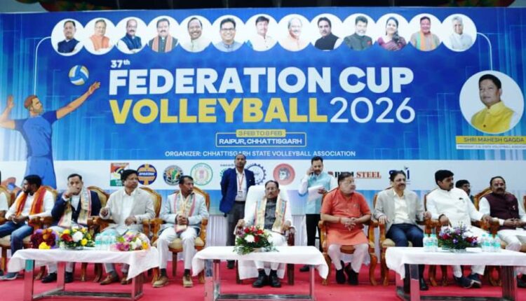 रायपुर. 3 फरवरी 2026. मुख्यमंत्री श्री विष्णु देव साय ने आज रायपुर के सरदार बलबीर सिंह जुनेजा इंडोर स्टेडियम में 37वीं फेडरेशन कप व्हॉलीबॉल चैंपियनशिप का उद्घाटन किया। छत्तीसगढ़ राज्य व्हॉलीबॉल एसोशिएशन द्वारा 3 फरवरी से 8 फरवरी तक इसका आयोजन किया गया है। चैंपियनशिप में भारत के लिए खेल चुके कई अंतरराष्ट्रीय खिलाड़ियों के साथ कुल 16 टीमें भाग ले रही हैं। रेलवे, सर्विसेस और इंडियन यूनिवर्सिटी सहित कई राज्यों की टीमें इसमें भागीदारी कर रही हैं। पुरुष वर्ग में 10 टीमें और महिला वर्ग में 6 टीमें हिस्सा ले रही हैं।