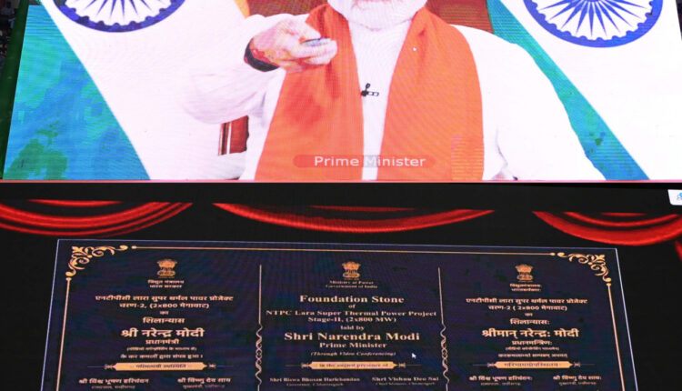प्रधानमंत्री श्री नरेन्द्र मोदी ने ऊर्जा मंत्रालय अंतर्गत रायगढ़ में लारा सुपर क्रिटिकल थर्मल पावर प्लांट स्टेज-2 (2x800MW) का शिलान्यास किया। यह परियोजना क्षेत्र में प्रत्यक्ष और अप्रत्यक्ष रोजगार के अवसर पैदा करेगी। यह परियोजना आस-पास के क्षेत्र में अधोसंरचना विकास (जैसे पहुंच मार्ग, जल निकासी, संचार, परिवहन सुविधाएं इत्यादि) और सामाजिक अधोसंरचना (जैसे शिक्षा और स्वास्थ्य देखभाल प्रणाली) की उपलब्धता में और सुधार करेगी।
