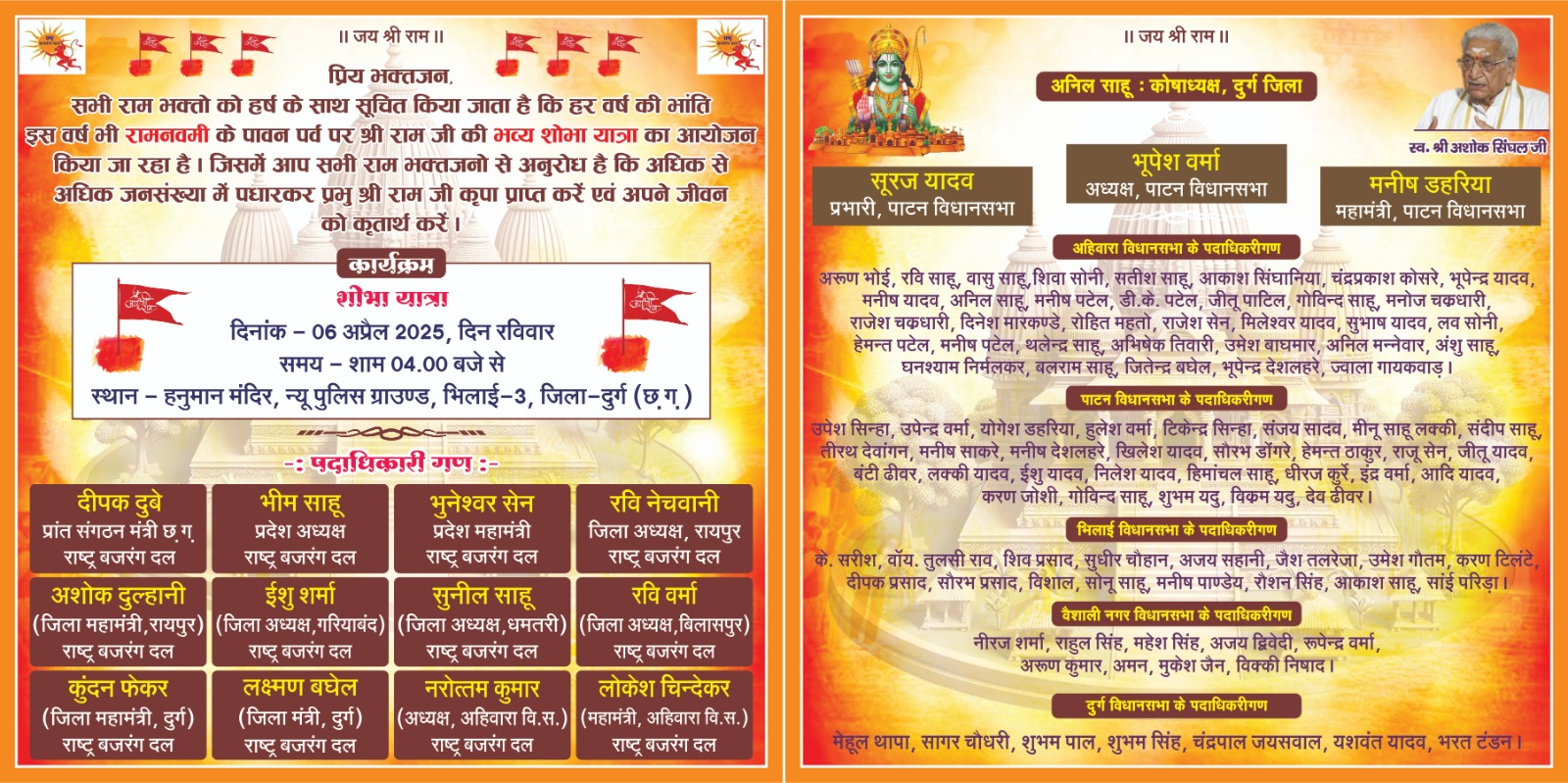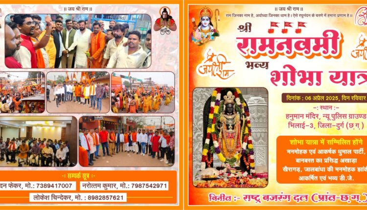 राष्ट्र बजरंग दल के तत्व धान में इस तारीख को निकलेगी भिलाई तीन की सबसे बड़ी रामनवमी की शोभायात्रा रैली।