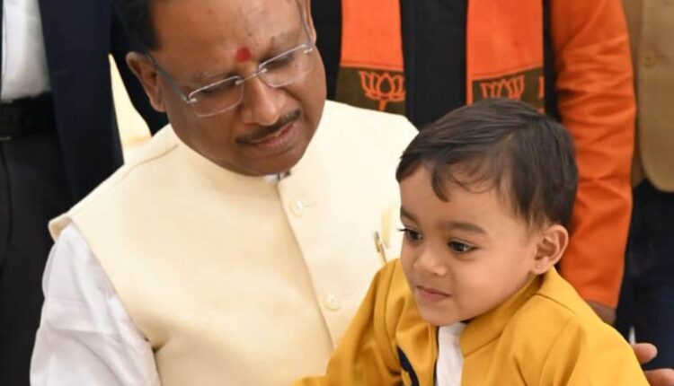 शहीद जयसिंह के नाती को गोद में लेकर दुलारते मुख्यमंत्री श्री विष्णु देव साय