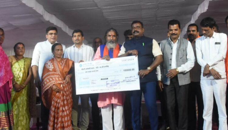 शिविर में विभिन्न योजनाओं के तहत सामग्री का वितरण किया गया। फड़ मुंशी बीमा योजना के तहत ओमबत्ती यादव और राजो बाई नाग को एक-एक लाख रुपये की चेक राशि प्रदान की गई। समाज कल्याण विभाग द्वारा दिव्यांगों को बैसाखी और व्हीलचेयर ट्रायसायकल का वितरण किया गया। आदिवासी विकास शाखा द्वारा वन अधिकार पत्र बांटे गए। श्रम विभाग द्वारा श्रम कार्ड, कृषि विभाग द्वारा रागी बीज और सॉयल हेल्थ कार्ड का वितरण किया गया। राष्ट्रीय बागवानी मिशन के तहत सब्जी बीज और जैविक खाद, पौधा प्रदाय योजना के तहत पौधे सहित विभिन्न योजनाओं के तहत हितग्राहीमूलक सामग्री का वितरण भी किया गया।