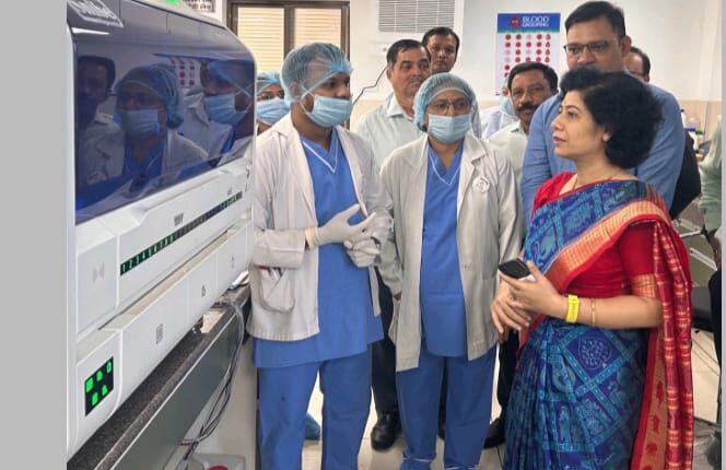 केन्द्रीय स्वास्थ्य एवं परिवार कल्याण मंत्रालय में संयुक्त सचिव (पालिसी) श्रीमती अनुराधा पटनायक ने आज रायपुर के जिला चिकित्सालय में संचालित हमर लैब और शहरी प्राथमिक स्वास्थ्य केंद्र मठपुरैना का भ्रमण किया। उन्होंने अस्पताल और हमर लैब में मरीजों को दी जा रही सुविधाओं की जानकारी ली। उन्होंने लैब सहित वहां के कार्यप्रणाली के बारे में प्रभारी अधिकारियों से पूछा। इस दौरान राष्ट्रीय स्वास्थ्य मिशन के संचालक डॉ जगदीश सोनकर मौजूद रहे।