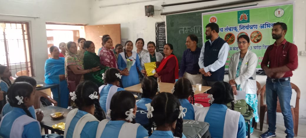 राष्ट्रीय तंबाकू नियंत्रण कार्यक्रम अंतर्गत शासकीय उच्चतर माध्यमिक विद्यालय हथखोज चरोदा भिलाई 3 में कलेक्टर अभिजीत सिंह ओर मुख्य चिकित्सा एवं स्वास्थ्य अधिकारी डॉ मनोज कुमार दानी ओर खंड चिकित्सा अधिकारी डॉ भुनेश्वर कठौतिया मेडिकल आफिसर डा शिखर अग्रवाल के संयुक्त मार्गदर्शन में संगोष्ठी आयोजित किया गया प्र खंड विस्तार प्रशिक्षक अधिकारी स्वास्थ्य सुपरवाइजर सैय्यद असलम ने तंबाकू पदार्थों के उपयोग करने होने वाली विभिन्न रोगो के प्रति जागरूक किया गया छात्र छात्राओं से शपथ ली गई की अपने जीवन में तंबाकू मिश्रित पदार्थों ओर नशा नहीं करेंगे तंबाकू छोड़ो ओर जिंदगी चुनो स्लोगन पर मौहल्ले ओर समाज में जन जागरूकता करेंगे बीईटीओ सैय्यद असलम ने बताया कि अधिकांश मामलों में तंबाकू मिश्रित पदार्थों के सेवन करने से मुख का कैंसर, सिगरेट व बीडी हुक्का के उपयोग करने से फेफड़ों का कैंसर ओर टी बी (क्षय)रोग होता है संगोष्ठी में 12 वी एवं 11 के छात्र छात्राओं को कोटपा एक्ट 2003 की जानकारी दी गई जिसमें सार्वजनिक क्षेत्रों में तंबाकू मिश्रित पदार्थों की बिक्री करने पर 200 रुपय का जुर्माना ओर अधिकतम 6माह का कारावास जैसी सजा की जानकारी दी गई है कार्यक्रम में प्राचार्य जायसवाल शिक्षक दिनेश्वरी ,मनीषा ठाकुर,नायर मेडमव स्वास्थ्य विभाग की एल एच व्ही श्रीमती आर विश्वास, एएनएम श्रीमती हर्षा मानिकपुरी, श्रीमती हेमलता निर्मल कर, स्वास्थ्य संयोजक एम पी डब्लू भूपेन्द्र सिन्हा,डुमेशवर यादव मितानिन कार्यक्रम समन्वयक शमीम बानो एम टी सतरूपा निर्मल कर मितानिन गण उपस्थित थे