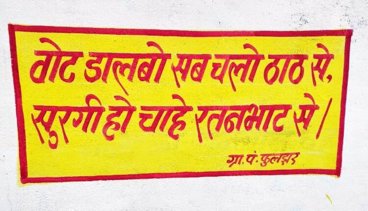 राजनांदगांव : मतदान जागरूकता के लिए ग्रामीण क्षेत्रों के दीवार लेखन में नारे बने आकर्षण का केन्द्र