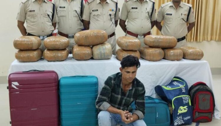 नाम पता पूछने पर अपना नाम – इरफान खां उर्फ फिरोज, पिता-रमजानी खां, उम्र-28 वर्ष, निवासी-सलेमपुर, थाना-इगलास, जिला-अलीगढ़ (उत्तर प्रदेश) का रहने वाला बताया । सभी 05 बैगो से कुल 13 पैकेट मादक पदार्थ गांजा जिसका कुल वजन 68 किलो 250 ग्राम पाया गया जिसकी कीमत रू.13,65,000/- (तेरह लाख पैसठ हजार रुपया) के साथ आरोपी को एनडीपीएस एक्ट के तहत् विधिवत कार्यवाही कर गिरफ्तार किया गया। पूछताछ में आरोपी ने बताया कि बरामद गांजा को पलासा (आंध्र प्रदेश) से खरीदकर गाड़ी संख्या 12843 पूरी अहमदाबाद एक्सप्रेस के A/1 कोच में पलासा से नागपुर होते हुए रेल मार्ग से अलीगढ़ उत्तरप्रदेश बेचने के लिए जा रहा था कि पकडा गया।