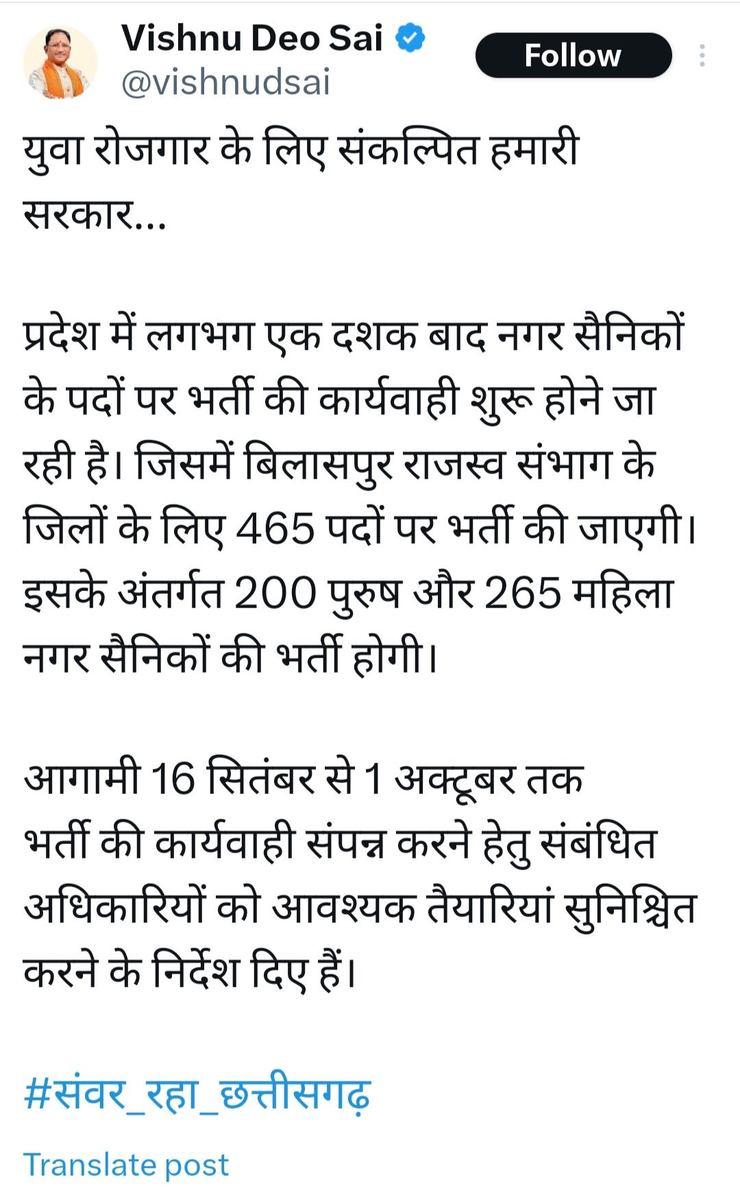 युवा रोजगार के लिए संकल्पित हमारी सरकार: विष्णुदेव साय
