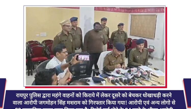 रायपुर पुलिस द्वारा महंगे वाहनों को किराये में लेकर दूसरे को बेचकर धोखाधड़ी करने वाला आरोपी जगमोहन सिंह मशराम को गिरफ्तार