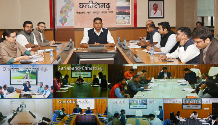 मुख्यमंत्री श्री विष्णु देव साय के निर्देश पर मुख्य सचिव श्री अमिताभ जैन ने आज यहां मंत्रालय महानदी भवन से राज्य के संभागायुक्त एवं कलेक्टरों की वीडियो कॉन्फ्रेंस से बैठक ली। बैठक में प्रधानमंत्री श्री नरेन्द्र मोदी जी की गारंटी के परिपालन में राज्य के किसान भाईयों के बकाया धान बोनस की राशि के भुगतान और विकसित भारत यात्रा संकल्प यात्रा और प्रधान मंत्री आवास योजना के संबंध में आवश्यक दिशा-निर्देश दिए हैं। मुख्य सचिव ने आगामी 25 दिसम्बर को पूर्व प्रधानमंत्री स्वर्गीय श्री अटल बिहारी बाजपेयी के जन्म दिवस के अवसर पर आयोजित सुशासन दिवस की तैयारियां और घोषणा पत्र के परिपालन में दो वर्ष के बकाया धान बोनस राशि वितरण के संबंध में अधिकारियों को आवश्यक कार्यवाही सुनिश्चित करने के निर्देश दिए। मुख्य सचिव ने कहा है कि धान बोनस वितरण का कार्यक्रम नई सरकार का सबसे महत्वपूर्ण कार्यक्रम है। उन्हांेेने कार्यक्रम की सफलता के लिए जिला अधिकारियों को पूरी सर्तकता, गंभीरता एवं तत्परता से कार्य करने कहा है। मुख्य सचिव ने प्रधानमंत्री आवास योजना के पात्र हितग्राहियों को लाभान्वित करने के लिए जरूरी कार्यवाही करने के भी निर्देश दिए। उल्लेखनीय है कि छत्तीगसढ़ में 18 लाख हितग्राहियों लाभान्वित किया जायेगा। मुख्य सचिव ने विकसित भारत संकल्प यात्रा में विभिन्न स्थानों पर आयोजित शिविरों में राष्ट्रीय कार्यक्रमों के तहत ज्यादा से ज्यादा हितग्राहियों को लाभान्वित करने कहा है। इस अवसर पर पंचायत एवं ग्रामीण विभाग के अपर मुख्य सचिव श्री सुब्रत साहू, कृषि विभाग के सचिव डॉ. कमलप्रीत सिंह और सहकारिता विभाग के सचिव श्री हिमशिखर गुप्ता सहित विभागीय सचिव व वरिष्ठ अधिकारी उपस्थित रहे।