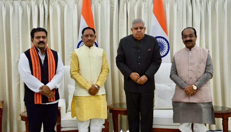 रायपुर : छत्तीसगढ़ के मुख्यमंत्री श्री विष्णुदेव साय ने आज शनिवार को सुबह नई दिल्ली में उपराष्ट्रपति निवास पर उपराष्ट्रपति श्री जगदीप धनखड़ से सौजन्य मुलाकात की