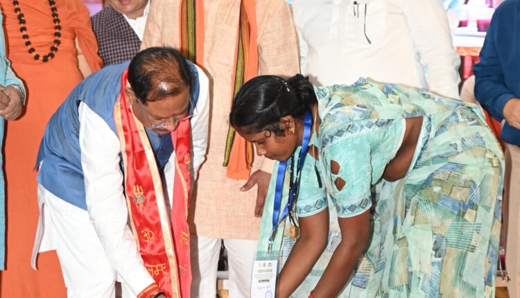 इस अवसर पर मानवीय संवेदनशीलता और सम्मान का अनूठा दृश्य भी देखने को मिला, जब मुख्यमंत्री श्री विष्णु देव साय ने ग्राम बढ़भुम (जिला बालोद) की हितग्राही श्रीमती शकुंतला कुरैटी को स्नेहपूर्वक अपने हाथों से चरण पादुका पहनाई।मुख्यमंत्री श्री साय की पहल से प्रेरित होकर वन मंत्री सहित अन्य अतिथियों ने भी हितग्राहियों – श्रीमती वैजयंती कुरैटी, श्रीमती निर्मला उईके, श्रीमती ललिता उईके तथा श्रीमती अघनतीन उसेंडी को अपने हाथों से चरण पादुका पहनाई।