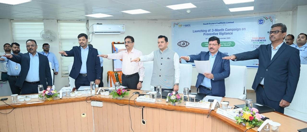 रायपुर 18 अगस्त 2025/एसईसीएल मुख्यालय बिलासपुर में केंद्रीय सतर्कता आयोग, नई दिल्ली के निर्देशानुसार तीन माह के निवारक सतर्कता (Preventive Vigilance) अभियान का शुभारंभ किया गया। इस अवसर पर मुख्य अतिथि के रूप में मुख्यमंत्री के सचिव श्री पी. दयानन्द उपस्थित थे।