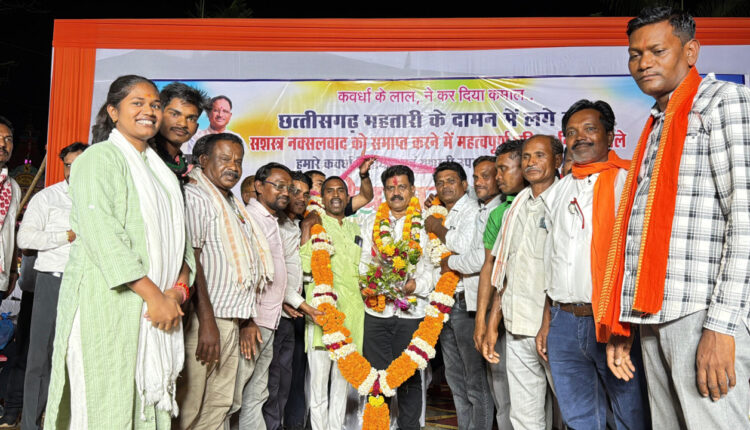 सशस्त्र नक्सलवाद से मुक्त छत्तीसगढ़ बनने के बाद उप मुख्यमंत्री एवं गृह मंत्री श्री विजय शर्मा रविवार को अपने विधानसभा क्षेत्र  कवर्धा पहली बार पहुंचे। जहां पर स्थानीय महामाया चौक में कवर्धा के लोगों ने उनके लिए भव्य ऐतिहासिक नागरिक अभिनंदन समारोह आयोजित किया। जिसमें हजारों की संख्या में लोग बाजा-गाजा, ढोल-नगाड़ों के साथ शामिल हुए, पूरे शहर में जश्न का वातावरण नजर आया। सभी को गर्व था कि कभी नक्सल प्रभावित कबीरधाम जिले के साथ अब पूरे छत्तीसगढ़ से भय और आतंक को दूर करने में उनके अपने माटी पुत्र का बड़ा योगदान रहा है।