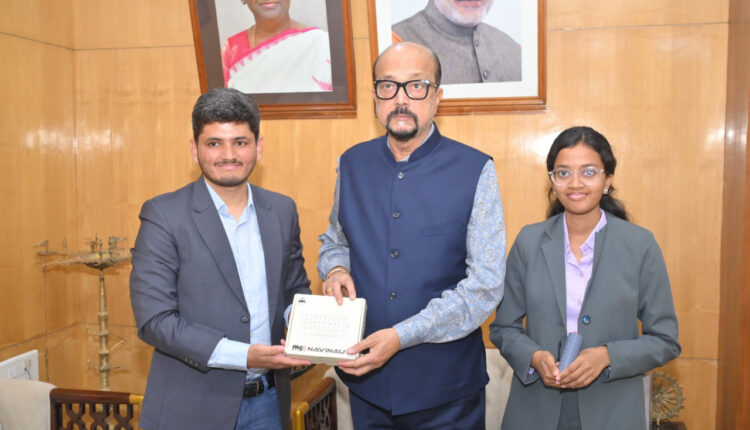 रायपुर: राज्यपाल श्री रमेन डेका से आज लोकभवन में यूनीसेफ के इमेजिन वेंचर के प्रथम भारतीय पुरस्कार विजेता एवं एलियन इनोवेशन्स हैदराबाद के संस्थापक श्री रवि किरण ने सौजन्य भेंट की। इस दौरान उन्होंने दृष्टिबाधित व्यक्तियों के लिए विकसित नवीनतम सहायक उपकरण का प्रदर्शन किया और इसकी विशेषताओं की जानकारी दी।