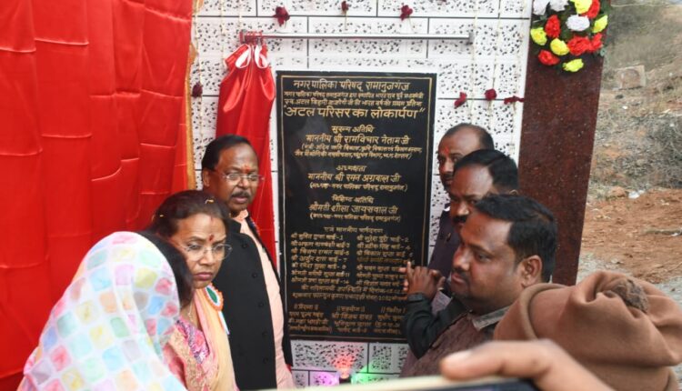 रायपुर: रामानुजगंज के विकास की दिशा में एक ऐतिहासिक अध्याय जोड़ते हुए, कैबिनेट मंत्री श्री रामविचार नेताम ने रामानुजगंज में नवनिर्मित श्अटल परिसरश् का फीता काटकर शुभारंभ किया। इस अवसर पर उन्होंने परिसर में स्थापित भारत रत्न पूर्व प्रधानमंत्री अटल बिहारी वाजपेयी जी की अष्टधातु प्रतिमा का अनावरण भी किया। कार्यक्रम में पूर्व जिला पंचायत अध्यक्ष श्रीमती पुष्पा नेताम विशेष रूप से उपस्थित रहीं। स्कूली बच्चों द्वारा प्रस्तुत सुमधुर स्वागत गीत ‘सांसों की सरगम गाए… सुस्वागतम‘ के साथ कार्यक्रम का आगाज हुआ।